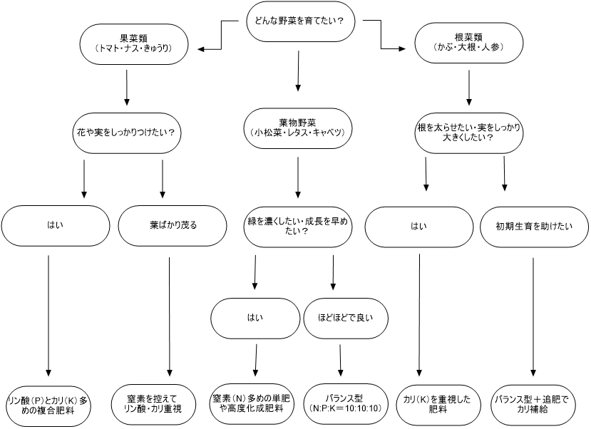 作物の種類や生育ステージに応じて、適切な肥料を選び、適量を施用することが大切です。